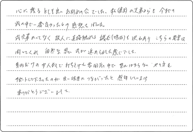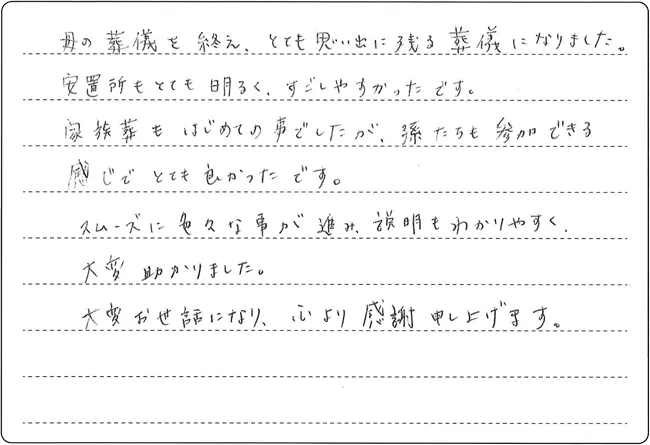 熊谷市小さい葬儀受付センターを利用されたお客様の声です。